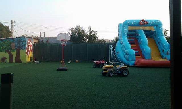 Σ΄ένα χώρο που είναι ειδικά διαμορφωμένος για παιδικές δραστηριότητες , το παιδί σας μπορεί να παίξει στις παιχνιδοκατασκευές μας ,να τρέξει ,να παίξει ποδόσφαιρο και μπάσκετ , να ζωγραφίσει κ.α .
