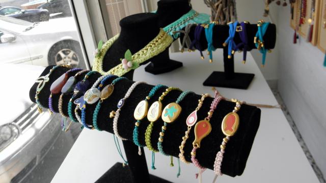 χειροποίητες δημιουργίες σε σαγιονάρες , τσαντάκια,κολιέ,γούρια,βραχιόλια και λαμπάδες.